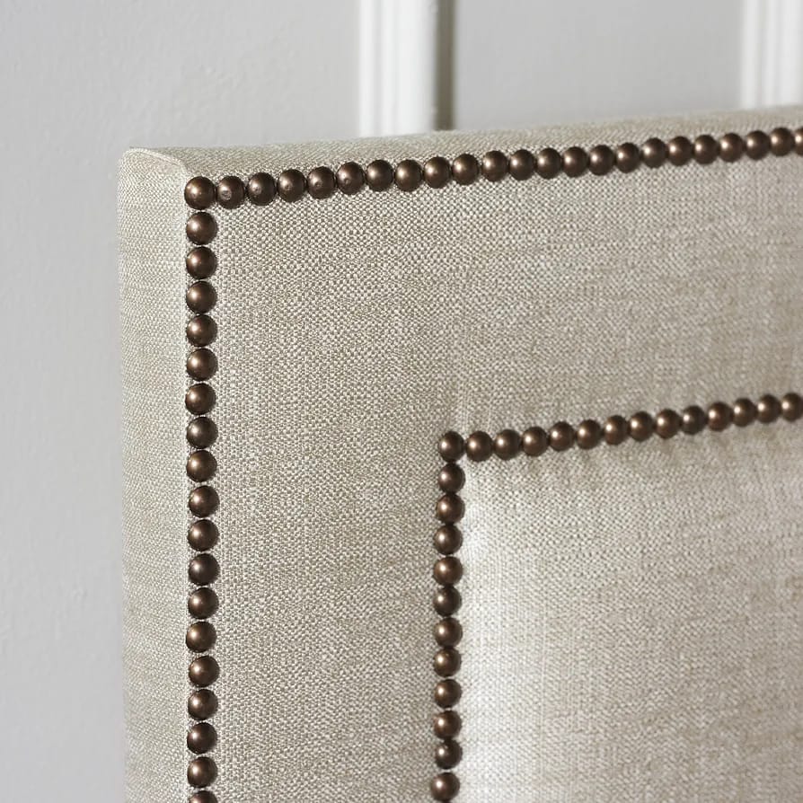 Hand-upholstered headboard with stud detailing for a refined touch.