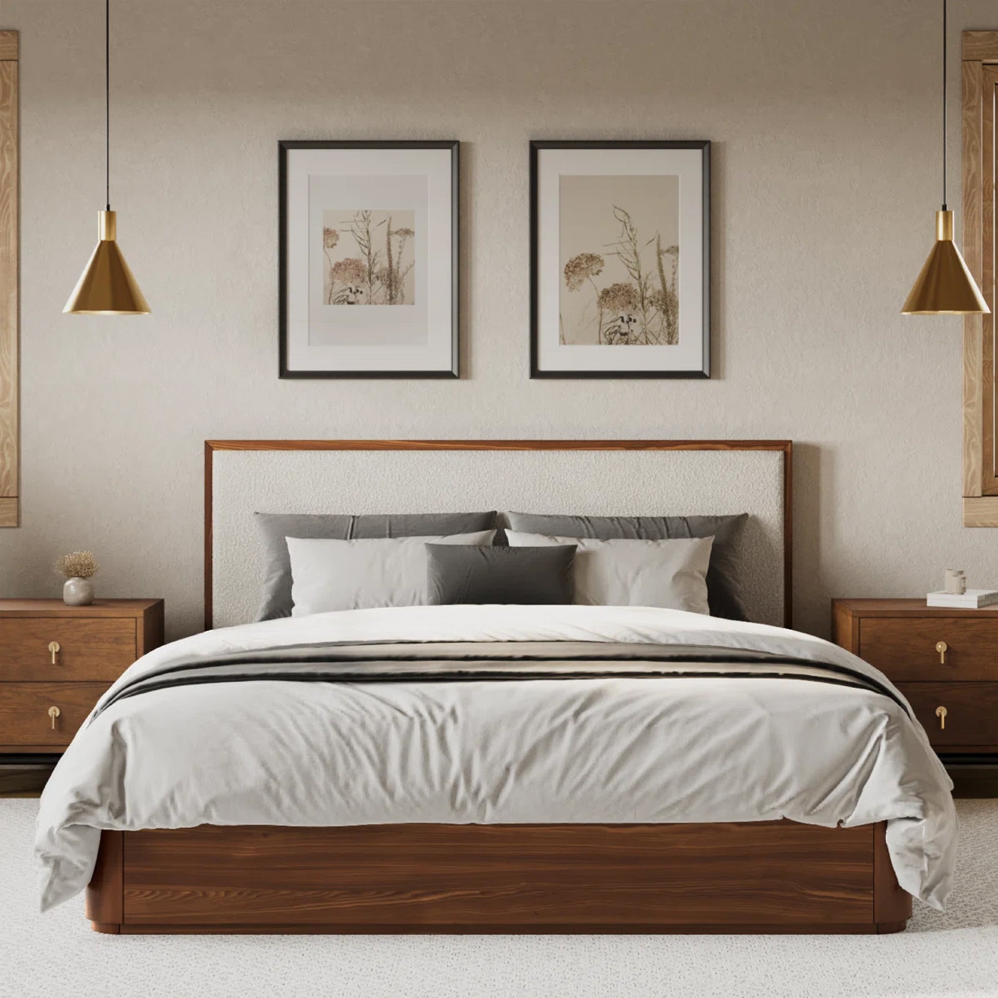 Nordic Elegance Solid Wood Platform Bed With Side Table